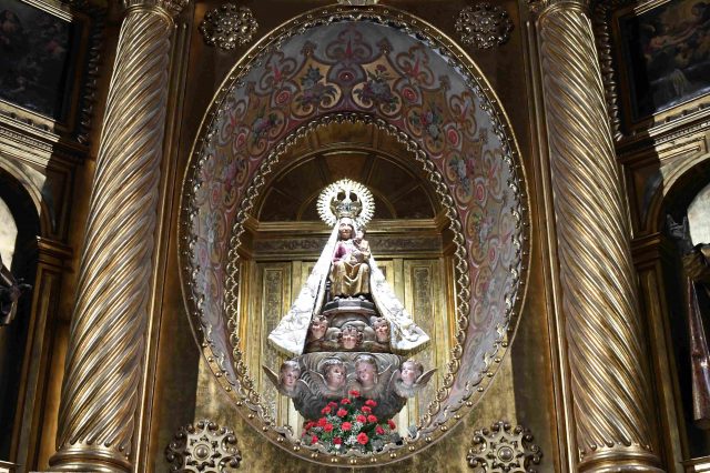 En la Basílica, en el retablo mayor, barroco de dos cuerpos con camarín, en el centro de un gran óvalo, se halla la imagen sedente con Niño, tardorománica (s. XIV), de autor desconocido, de Nuestra Señora de los Milagros, talla de Virgen negra, policromada y dorada.